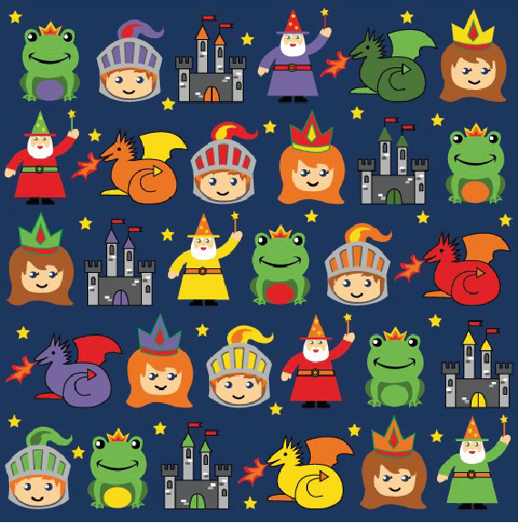 3 metre square placement carpet with clearly identifiable seating areas for up to 30 children. The brightly coloured characters include a wizard, castle and dragon.