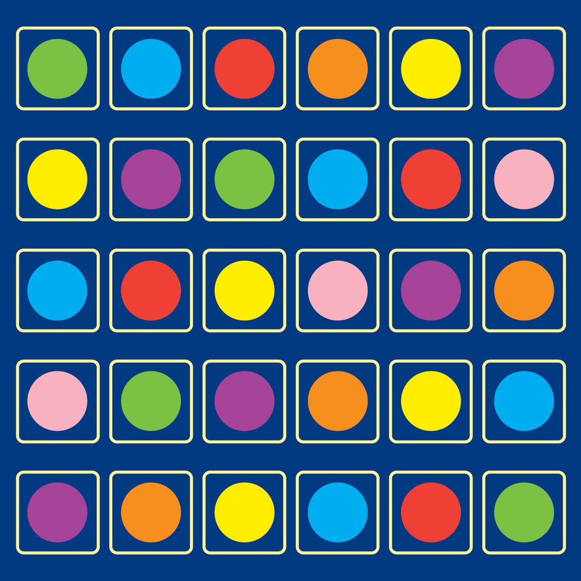 3 metre square placement carpet with clearly identifiable seating areas for up to 30 children. The brightly coloured spots make play time fun and easy.