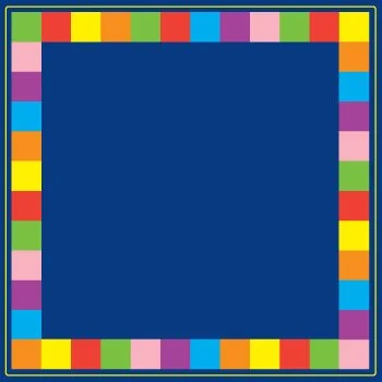 3 metre square placement carpet with brightly coloured rainbow edging. Perfect for a variety of classroom activities such as play time or break out spaces.
